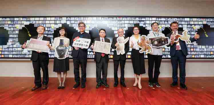 至成国际携手创利空间为故宫建置的智慧文物互动导览墙及轮播墙,,,今日正式启用。。。。(左四:至成国际新事业暨投资管理总部副总经理杨本豫、、、右四:故宫博物院院长吴密察、、、、右三:太极影音董事长黄宝云)