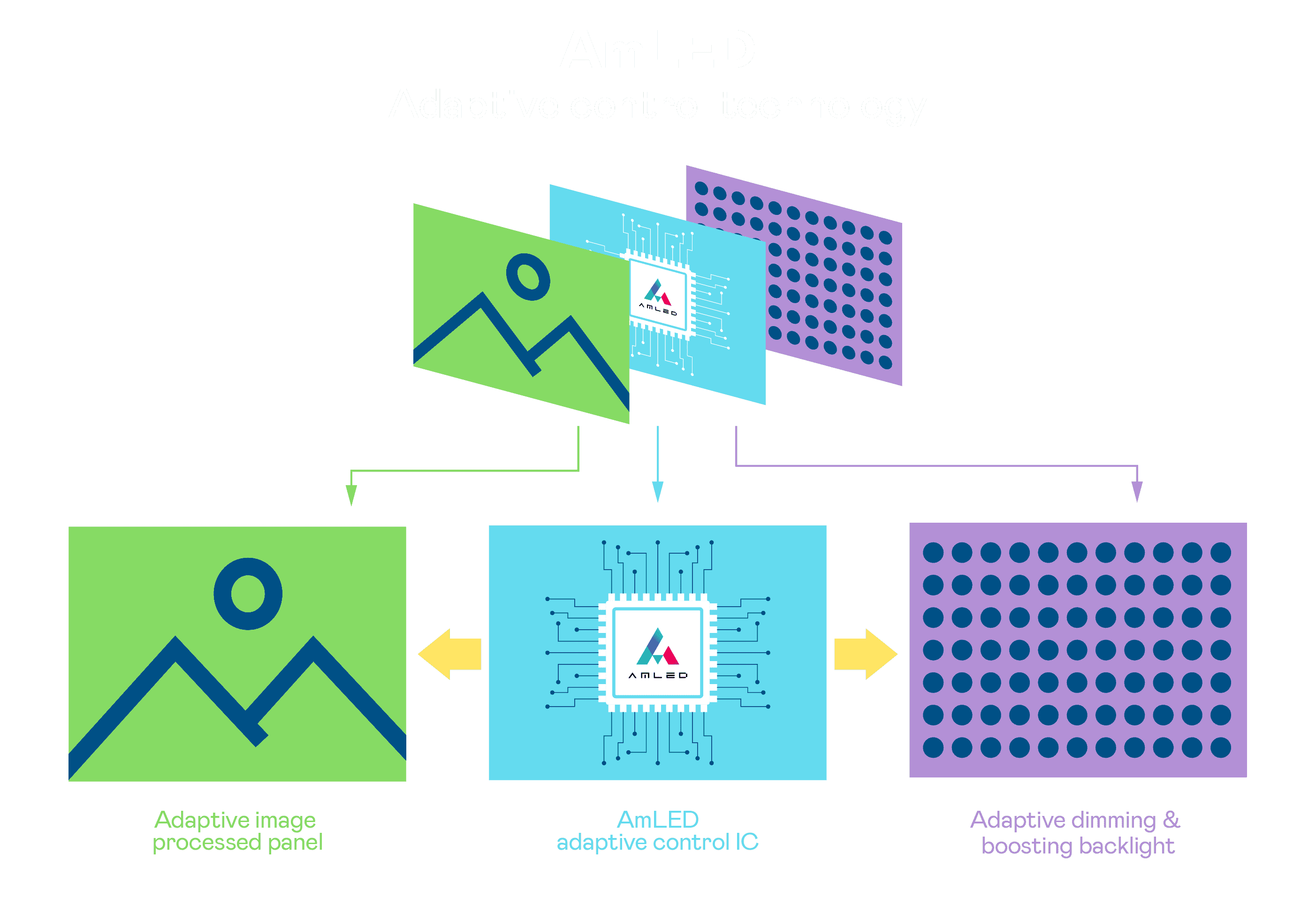 透过动态影像处理和 Mini LED 背光模组的动态对比及峰值亮度调变,,,AmLED 显示技术精准细致的局部调光效果达到超过 1,000 nits 的超高亮度表现,,亮部更明亮、、暗处更深邃,,,呈现真实黑色中的亮度以及平滑灰阶,,打造出具层次分明的精致光影细节。。