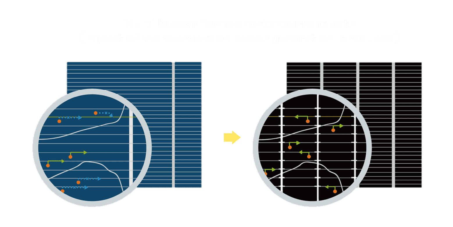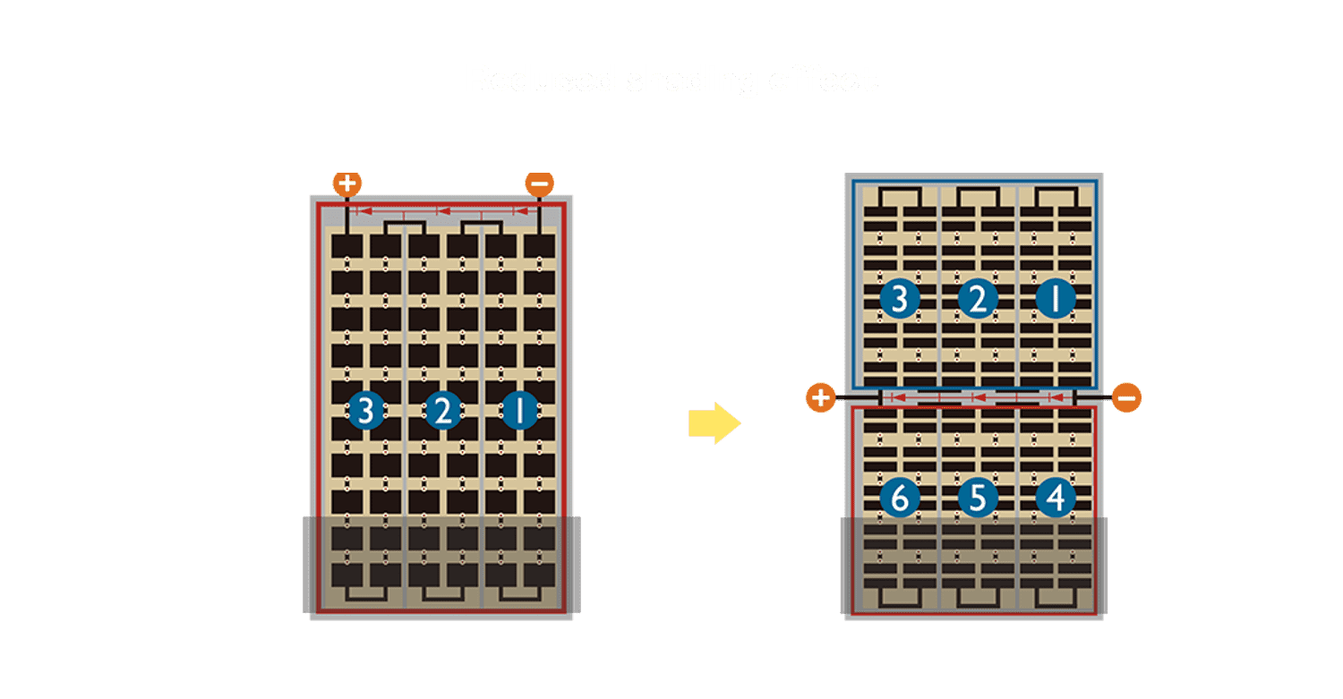优化的太阳能电池结构设计,,不仅提高电流收集效率,,,降低电池隐裂,,使太阳能模组长期维持稳定的输出效能,,,提高营运效益。。